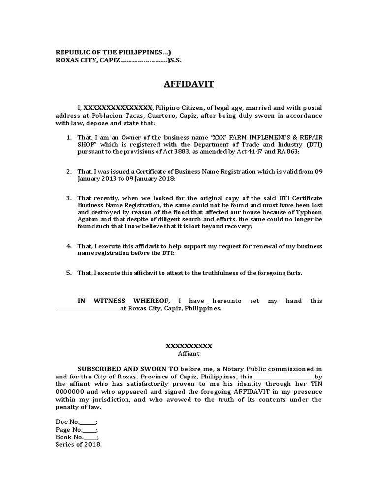 Affidavit Of Loss Dti Registration Affidavit Civil Law Common Law