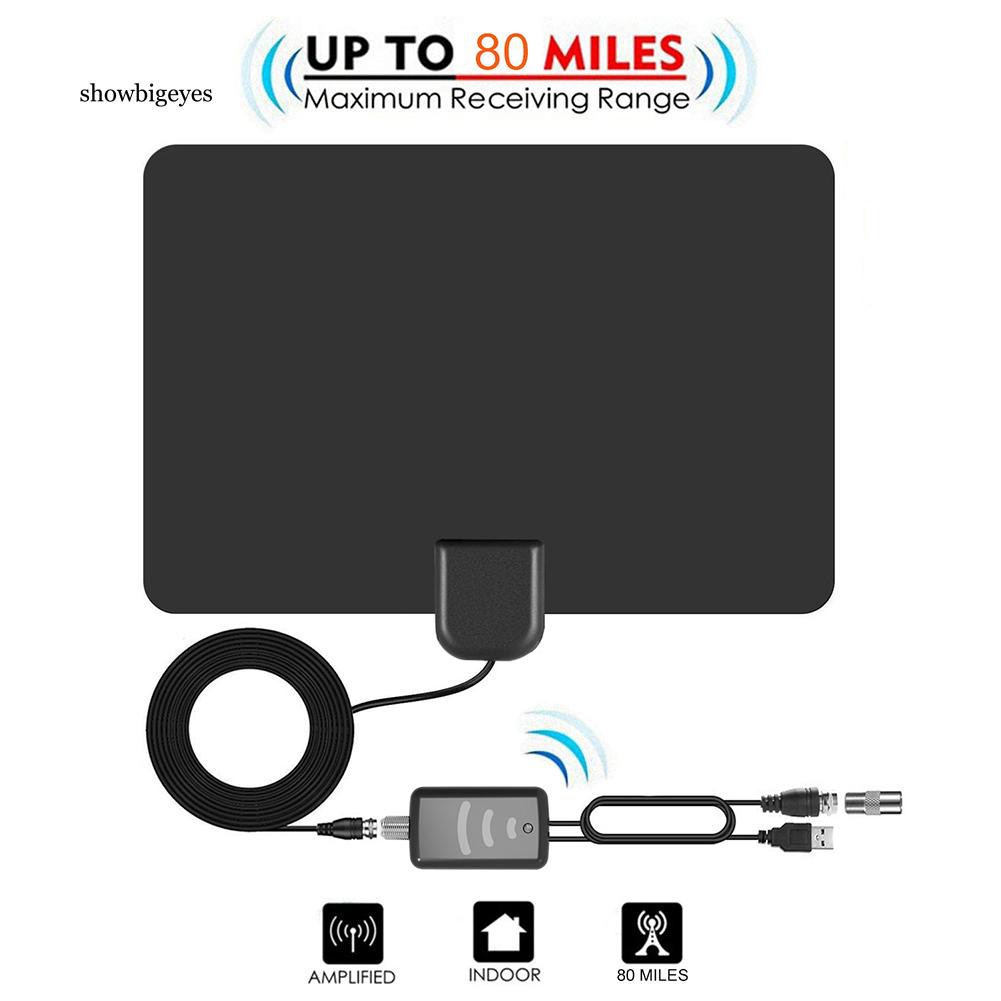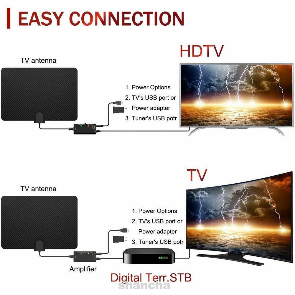 Flat Indoor Hd Signal Amplifier Digital Tv Antenna Conversion Head Hdtv 50 Miles Range Vhf Uhf Shopee Indonesia