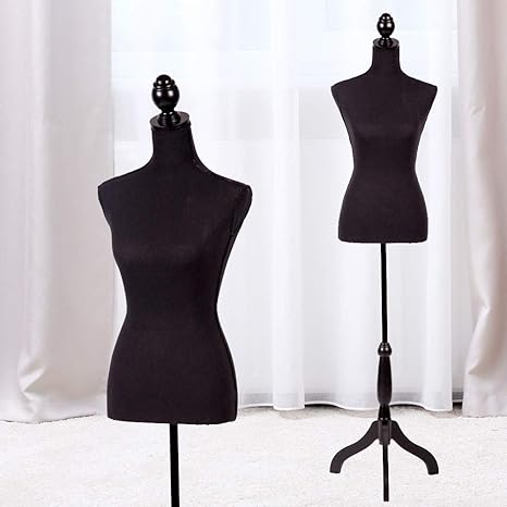 Amazon Com Mannequin Torso Manikin Body Dress Form With Wooden Tripod Stand 60 67 Height Adjustable Female Clothing Form Pinnable Mannequin Jewelry Display Black Arts Crafts Sewing