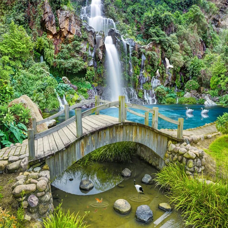 Nºbeibehang Shanquan Creek Br Cke Wasser Wasserfall Landschaft Wand Benutzerdefinierte Gro Wandbild Gr Ne Tapete Papel Parede Para Quarto A508
