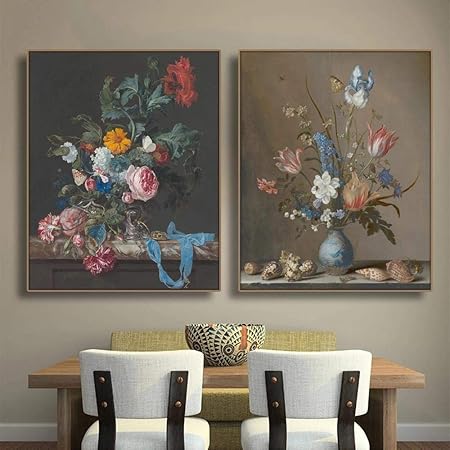 AdoDecor Flores Lienzo Pintura Cartel Retro Vintage Pared Arte impresión Moderna decoración del hogar Cuadros de Pared para Dormitorio Sala de Estar decoración 20x30cmx2 con Marco: Amazon.es: Hogar